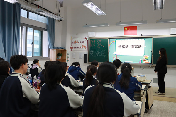主題班會(huì)課上,各班班主任深入淺出地向同學(xué)們講述了憲法相關(guān)知識(shí),介紹與未成年人息息相關(guān)的法律法規(guī),引導(dǎo)學(xué)生深入了解憲法的重要性以及對(duì)日常生活的影響,增強(qiáng)學(xué)生的法治意識(shí),學(xué)會(huì)用法律的武器保護(hù)自己,倡導(dǎo)學(xué)生從守紀(jì)做起,樹(shù)立正確的價(jià)值觀,共同營(yíng)造文明、友善、和諧,充滿正能量的校園。