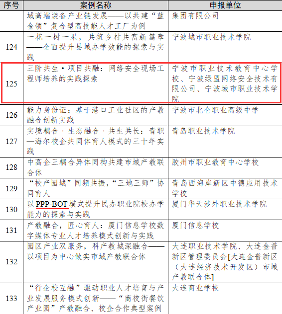 近日,教育部網(wǎng)站公示2024年產(chǎn)教融合、校企合作典型案例遴選結果,寧波市職業(yè)技術教育中心學校、寧波綠盟網(wǎng)絡安全技術有限公司、寧波城市職業(yè)技術學院共同申報的網(wǎng)絡安全育人案例榜上有名。這一榮譽的獲得標志著學校在網(wǎng)絡安全現(xiàn)場工程師培養(yǎng)的創(chuàng)新實踐得到了國家級的認可與肯定。