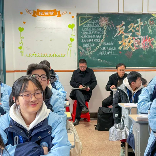 12日上午,工作站的書記和校長們早早地調研了學校晨讀前的學生入校管理、教學區管理,隨后分組聽取了職普融通班數學課和機械制圖的專業課,從日常課堂角度了解職業學校師生教育教學的現狀。