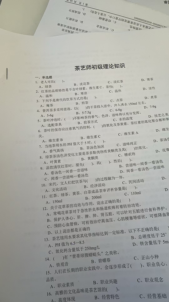 培訓(xùn)結(jié)束后,所有學(xué)員參加了由相關(guān)部門組織的茶藝師資格證書考試。考試分為理論知識和操作技能兩部分,理論考試主要考察學(xué)員對茶文化、茶葉分類、制作工藝、沖泡技巧等方面的掌握情況,而操作技能考核則側(cè)重于考察學(xué)員的實(shí)際操作能力。經(jīng)過嚴(yán)格的考核所有學(xué)員都順利通過考試,獲得了茶藝師職業(yè)資格證書。這不僅證明了他們的專業(yè)水平,也為他們在茶藝行業(yè)中的職業(yè)發(fā)展提供了有力支持。
