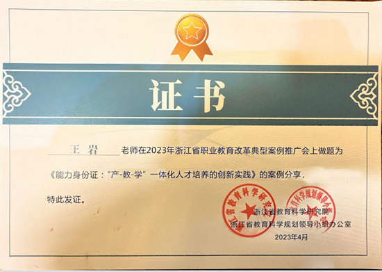 孵化項目案例獲得浙江省中等職業教育改革優秀典型案例。