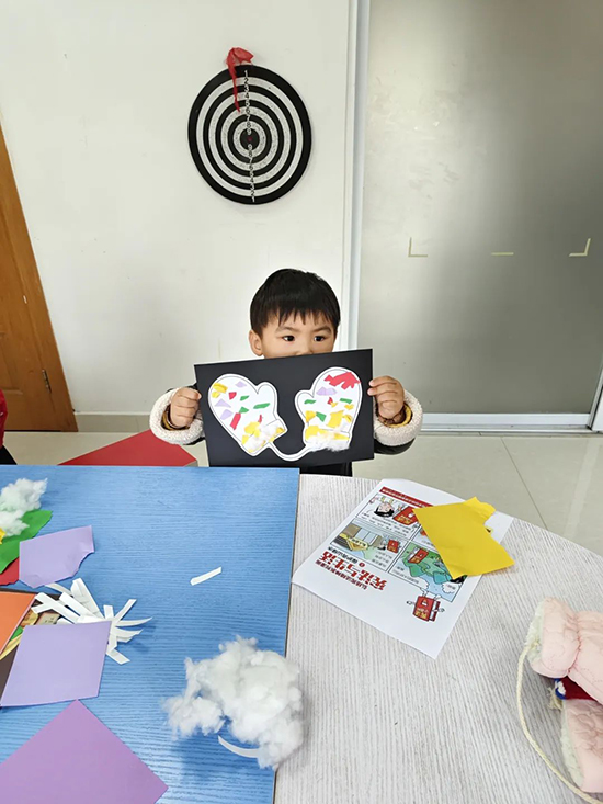 接下來進入到了手工制作環節。老師向小朋友們展示了棉手套,并告訴大家手工手套的制作方法,大家都躍躍欲試。拿到提前準備好的材料,大家紛紛發揮自己豐富的想象能力,或在家長的幫助下來制作自己的手套,有效鍛煉了小朋友們的動手能力、想象力和創造力。