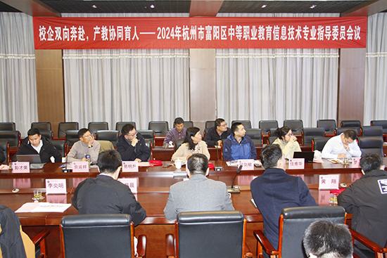 為全面深化校企合作、促進產(chǎn)教融合,加快信息技術(shù)人才培養(yǎng)與數(shù)字產(chǎn)業(yè)發(fā)展相匹配,共同提升專業(yè)建設(shè)水平和人才培養(yǎng)質(zhì)量。12月11日,杭州市富陽區(qū)中等職業(yè)教育信息技術(shù)專業(yè)指導(dǎo)委員會會議在富陽區(qū)職業(yè)教育中心九樓報告廳順利召開。本次會議的主題是“校企雙向奔赴,產(chǎn)教協(xié)同育人”。富陽區(qū)經(jīng)濟和信息化局?jǐn)?shù)字經(jīng)濟科科長方晨晨、杭州科技職業(yè)技術(shù)學(xué)院物聯(lián)網(wǎng)技術(shù)學(xué)院院長楊悅梅、副書記何劍敏、杭州市電子信息職業(yè)學(xué)校正高級教師、副校長佘運祥、浙江育英職業(yè)技術(shù)學(xué)院網(wǎng)絡(luò)專業(yè)負(fù)責(zé)人易明升、富陽區(qū)職教中心校長夏峰巍和副校長章文泉等領(lǐng)導(dǎo)出席會議。本次會議由信息技術(shù)專業(yè)部副部長徐揚程主持,另有十余家校企緊密合作企業(yè)代表與會。