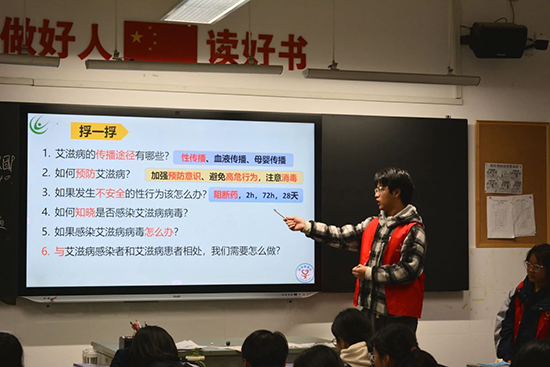 活動中,同伴教育社主持人通過頭腦風暴、數據報告、科普視頻、提問互動、知識梳理、學習分享等環節,幫助同學們了解艾滋病的致病原理、癥狀、危害、傳播途徑、傳播條件、阻斷藥、檢測方法、積極治療、U=U、有效防治措施等科學知識,提高預防高危行為的安全意識,加強平等、關愛和不歧視艾滋病病毒感染者等觀念。