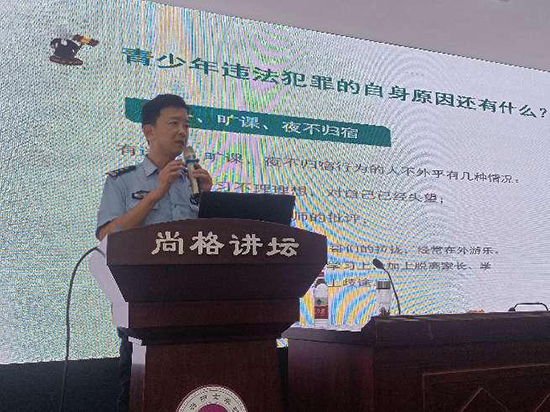 蔡警官以《法制護青春 引航成長路》為主題開講,講座分為五個部分:懂法知法,做合法公民;遵法守法,做合格學生;反詐防詐,護個人財產;珍愛生命,遠離毒品;崇尚科學,反對邪教。他結合生動鮮活、觸目驚心的青少年犯罪案例,對相關的法律條文進行了通俗的講解,聯系實際,以案釋法,以法論事,告誡同學們引以為戒,增強法制觀念,提高法律意識。