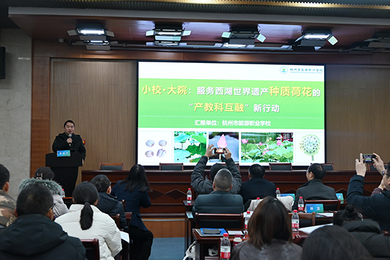 杭州市旅游職業學校夏嘉平以《小校大院:服務西湖世界遺產荷花種質資源的產教科互融新行動》為題作分享。湖州市現代農業技術學校鄒琴作《生態融入 產教融合 科教融匯:中職涉農專業“三融五生四匠”人才培養探索實踐》專題講座。杭州市蕭山區第二中等職業學校林靜作《從技能操練到技創研發:服務新舊動能轉換的涉農職校專創融合育人新探索》專題講座。仙居縣職業中專泮玲嬌作《產教聯動·群鏈融合·五梅共育:楊梅產業集群技能型人才培養實踐探索》專題講座。他們分別從不同角度進行農經專業課改成果方面的交流。