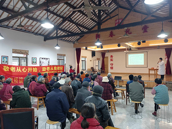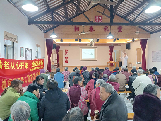12月12日下午,諸暨市楓橋鎮陽春村的文化禮堂內熱鬧非凡,諸暨市楓橋鎮社區教育學校邀請諸暨市第二人民醫院內科主任駱一舟和針灸理療科副主任鐘強在此為老年人做養生保健講座。