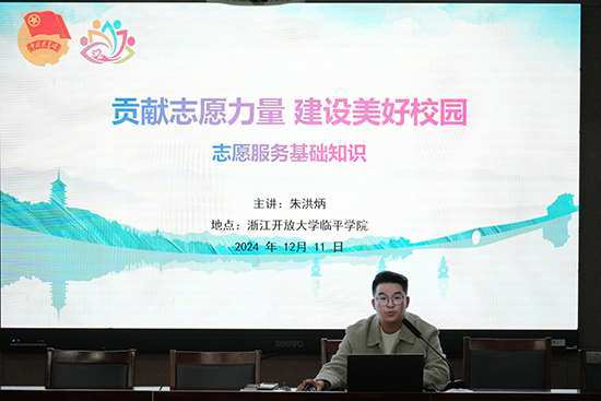 12月11日中午,浙江開放大學臨平學院202411期業余團校于清蓮廳一樓報告廳開啟了首次團課——“貢獻志愿力量 建設美好校園”。本次團課由杭州志愿者培訓師、院團委副書記朱洪炳老師主講,業余團校233位學員及2022級團總支委員、大一和高一年級各團支部書記共同參與。