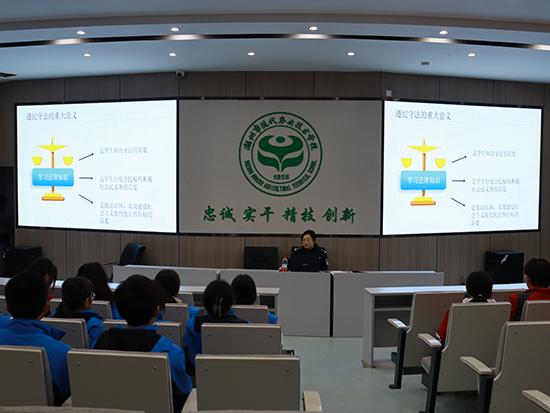 為進(jìn)一步增強(qiáng)學(xué)生的法治觀念,提高學(xué)生的法律意識(shí),有效預(yù)防青少年犯罪,12月5日,湖州市公安局出入境管理局政委胡侃到湖州市現(xiàn)代農(nóng)業(yè)技術(shù)學(xué)校開展了以“普法宣傳進(jìn)校園,法治護(hù)航促成長(zhǎng)”為主題的講座。