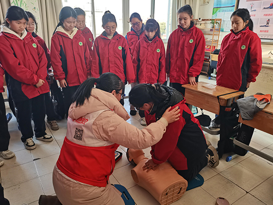 課上,賀老師以通俗易懂的語言,深入淺出地講解了心搏驟停的識別方法、徒手心肺復蘇的正確操作步驟以及自動體外除顫器(AED)的使用流程與注意事項。演示互動環節,同學們躍躍欲試,紛紛化身為“急救員”,搶著在人體模型上體驗心肺復蘇的操作過程。賀老師手把手指導,耐心地糾正每位同學的動作,從按壓的位置、力度到呼吸的配合,不放過任何一個細節。“學習急救知識很有用,不僅能幫到自己,也能夠幫到同學和家人。”余同學表示。