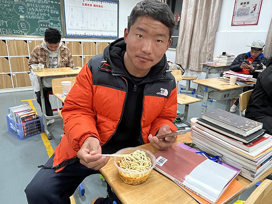 在老師們的通力合作下,牛骨被精心熬制成一鍋濃郁香醇的湯底,再配以細致挑選的面條和佐料,最終呈現出一碗碗滿載寧波風味的藏面。當孩子們看到這一碗碗熱氣騰騰、香氣撲鼻的藏面時,臉上洋溢著驚喜與感動的神情,他們迫不及待地品嘗起來,感受到了家的味道與溫暖。
