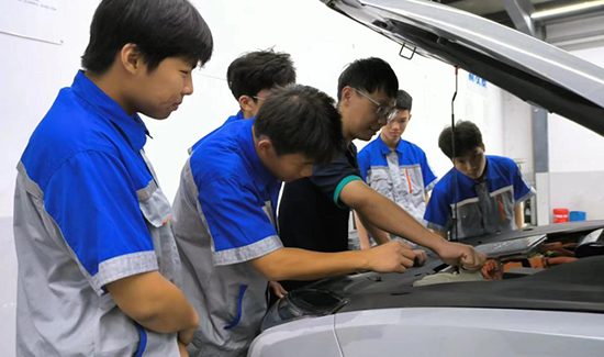 隨著新能源汽車的快速發(fā)展,諸暨市職教中心與紹興國源汽車有限公司合作,共建了1800平方米的技創(chuàng)基地,旨在探索產(chǎn)教融合新路徑。該基地不僅服務(wù)于諸暨全市的“蔚來”汽車后市場(chǎng),還承擔(dān)著學(xué)徒制培訓(xùn)、實(shí)訓(xùn)教材開發(fā)、技能培訓(xùn)等任務(wù)。學(xué)生們以小學(xué)徒身份,在機(jī)電、鈑金、油漆、車美四個(gè)崗位進(jìn)行輪訓(xùn),由企業(yè)師傅與學(xué)校老師共同指導(dǎo)。