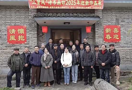 2024年12月28日上午,諸暨市楓橋鎮(zhèn)王冕藝術(shù)館內(nèi)有點熱鬧,參觀者對著張掛的書畫作品低聲評頭品足,這里正在舉行“‘三賢風(fēng)’詩書畫印2025年迎新作品展”。