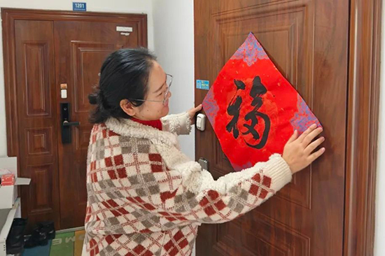 為了這場新年拜訪,學校方志堅書法工作室的師生們特地書寫了對聯和福字,期許為阿姨家帶去新年的氛圍。