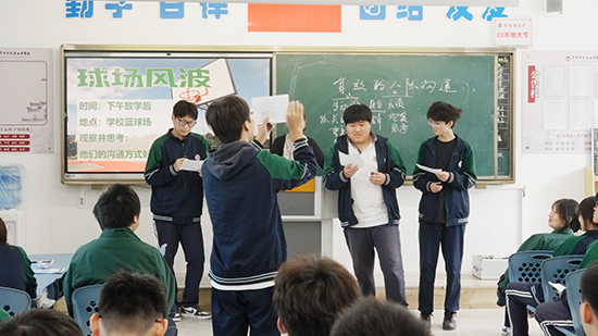 溝通最難的不是懂得道理,而是能靈活應(yīng)用。為了突破這一難點(diǎn),朱老師以原景重現(xiàn)的方式,通過情境模擬,讓學(xué)生演練溝通交流的技巧;通過角色扮演,讓學(xué)生尋找有效溝通的方案。