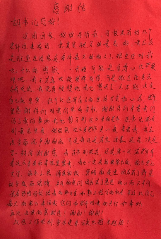 該校黨委書記胡贊帶頭來(lái)到困難學(xué)子家中,當(dāng)看到一家四口蝸居在緊鄰父母菜地的簡(jiǎn)易大棚中,僅擁有兩間狹小的房間用于居住,而日常做飯與如廁則需在大棚之外的簡(jiǎn)易設(shè)施中進(jìn)行,他的心被深深觸動(dòng)。他深知,教育的真諦,不在于傳授了多少知識(shí),而在于滋養(yǎng)了多少心靈,點(diǎn)燃了多少夢(mèng)想。他決心持續(xù)發(fā)力,堅(jiān)定助力貧困學(xué)子成長(zhǎng),讓愛(ài)的陽(yáng)光毫無(wú)保留地灑滿學(xué)生心間。