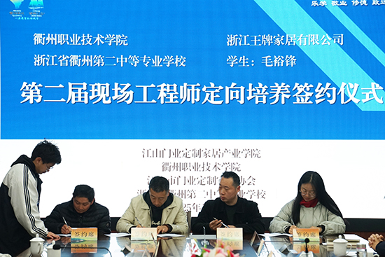 1月7日,衢州第二中等專業(yè)學(xué)校舉辦了家具設(shè)計與制作專業(yè)第二屆現(xiàn)場工程師定向培養(yǎng)簽約儀式。此次活動標(biāo)志著衢州第二中專、衢州職業(yè)技術(shù)學(xué)院與浙江王牌家居有限公司、浙江舒福家智能家居有限公司、浙江典尚木業(yè)有限公司、江山市多美歌門業(yè)有限公司深化合作,共同為家居行業(yè)培養(yǎng)專業(yè)技能扎實、綜合水平較高的現(xiàn)場工程師,以應(yīng)對行業(yè)對高素質(zhì)技術(shù)人才的迫切需求。