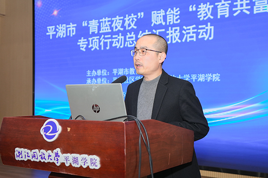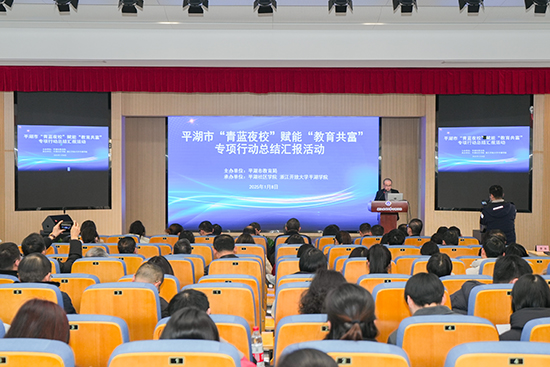 1月8日下午,浙江省平湖市“青藍夜校”賦能“教育共富”專項行動總結匯報活動在浙江開放大學平湖學院(平湖社區學院)報告廳拉開序幕。本次活動旨在回顧過去一年的工作成果,展望未來的發展方向,推動新時代“夜校”服務品牌的進一步提升。浙江開放大學黨委委員、副校長、浙江省社區教育指導中心副主任張吉先,嘉興市教育局、嘉興開放大學、平湖市委社會工作部、平湖團市委、平湖市教育局等相關部門分管負責人出席活動。活動由平湖市教育局職教成教科科長李豐主持。