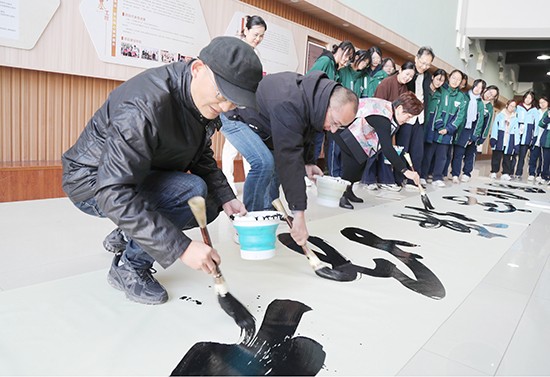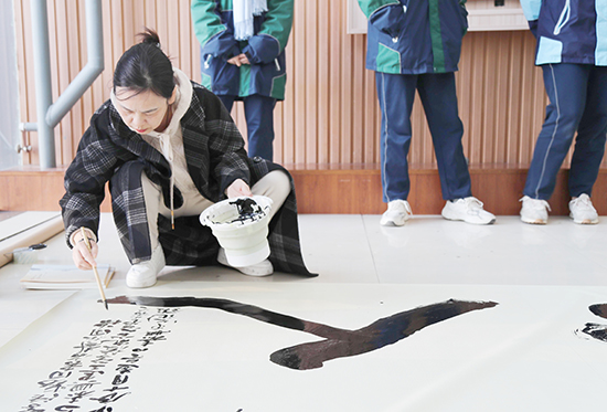 褚曉瓊表示,作為黨建共同體成員單位,嘉興市文化館與學校在公益培訓、職業文化體驗、非遺技藝等方面有著緊密的合作。作為中國傳統文化的瑰寶,書法的藝術魅力在于每一筆每一劃的精準與流暢。大字書法,在整個書法體系中占有重要的位置,尤其在氣勢與情感表達上有著獨特的優勢。