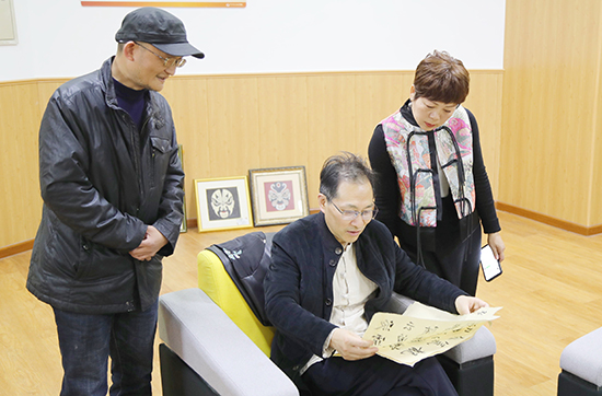 活動最后,3位書法家與學校師生就書法藝術進行了熱情互動探討,書法家們點評了師生書法愛好者的書法作品,并指導現場師生揮墨書寫。學生紛紛表示在專家的指點下,對書法有了更深刻的體悟。