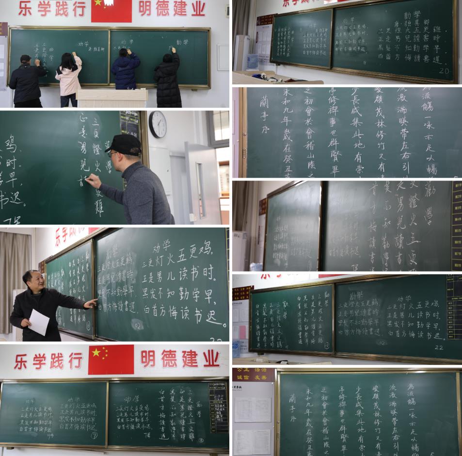復(fù)賽采用現(xiàn)場(chǎng)賽。粉筆字為必選項(xiàng),硬筆字或毛筆字二選一。當(dāng)天,學(xué)校邀請(qǐng)國(guó)家級(jí)工美大師童人杰,省書協(xié)會(huì)員柴林根、江軍對(duì)復(fù)賽作品進(jìn)行現(xiàn)場(chǎng)打分。最終評(píng)出一等獎(jiǎng)3名,二等獎(jiǎng)9名,三等獎(jiǎng)16名。
