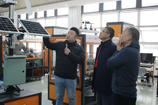 考察組一行走訪了學校的工程實踐中心,先后參觀了模具智能制造產線、智能裝備一體化學習工作站、世界技能大賽可再生能源項目中國集訓基地等,深入了解學校產教融合和校企合作建設成果,切身感受學?,F代化的教學環境和優質教學資源。