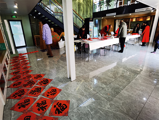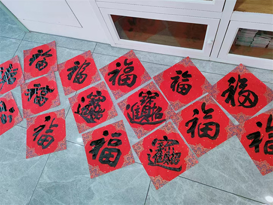 聞訊而來的居民們早早就在現場排起了長隊,眼神中充滿了期待。當一幅幅飽含著祝福的春聯和福字完成時,居民們紛紛圍上前去,挑選自己心儀的作品。有的居民拿到春聯后,迫不及待地展開欣賞,臉上洋溢著幸福的笑容;有的則向老師們請教書法技巧,現場氛圍熱烈而溫馨。