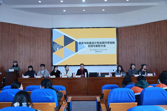 1月15日,浙江省湖州藝術與設計學校美發與形象設計專業現代學徒制總結與表彰大會舉行,學校領導、合作企業代表、美容美發專業教師及2319班全體師生參加。