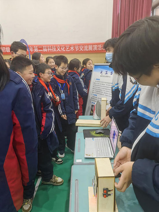 團隊成員們為初級中學的學生和老師們展示了自己研發的智能項目,引來了現場的熱烈反響和濃厚興趣。這些項目均融合了人工智能技術,在展示過程中,團隊成員詳細介紹了智能項目的功能和應用場景。該項目包括智慧農場甲烷合理應用、廚房寶寶——智能煤氣報警裝置等等。學生們紛紛圍攏過來,好奇地觀看著演示,不時發出驚嘆聲。