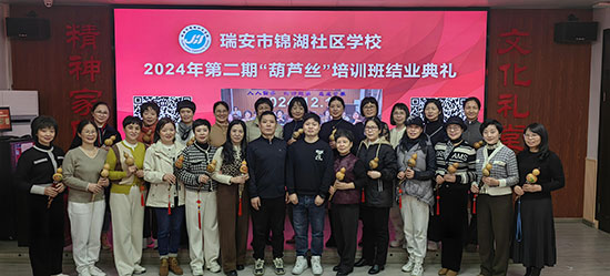 隨著最后一個音符落下,本期葫蘆絲培訓正式畫上圓滿句號。這場結業典禮不僅是對學員們學習成果的肯定,更是對他們未來藝術之路的美好期許。相信在瑞安市錦湖社區學校的大力支持和劉明明導師的專業引領下,這些熱愛葫蘆絲藝術的學員們將繼續在音樂的道路上砥礪前行,創造更加輝煌的成績,為葫蘆絲藝術的傳承與發展注入新的活力。(張再益)