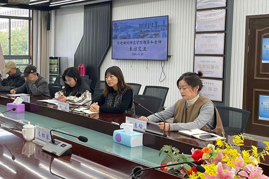 本學期,浙江信息工程學校有幸迎來了湖州師范學院應用心理學的4位師范生來校實習。為了深入兩校合作與交流,進一步了解實習生的學習與工作情況,11月22日上午,湖州師范學院教師教育學院黨委書記沈江龍、應用心理系黨支部副書記馮洋、應用心理系教研室主任王松琴、應用心理系教師代表徐冬英一行4人來到浙江信息工程學校,參加心理專業師范生教育實習調研座談會。會議由學校學生處楊育萍處長主持,校黨委副書記、校長閔惠敏,黨委委員、副校長陸婷,專職心理教師管惠瑜、應慶和4位實習生共同出席。