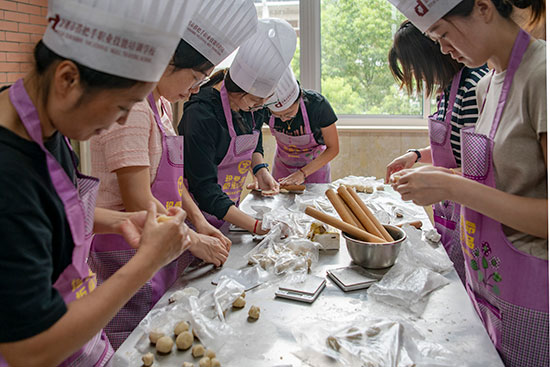 活動(dòng)現(xiàn)場(chǎng),培訓(xùn)老師精心準(zhǔn)備了各種月餅材料,包括面粉黃家埠成校,玉米油,還有豆沙、鮮肉等各式餡料,桌上整齊地?cái)[好了模具、刮板、電子秤等工具。“首先,我們要把準(zhǔn)備一個(gè)面團(tuán),一個(gè)油團(tuán)……”老師一邊演示,一邊耐心向大家講述月餅制作的具體方法和動(dòng)作要領(lǐng)。