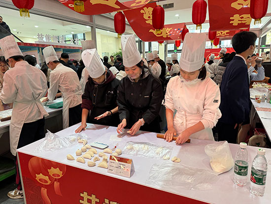 在一樓的烹飪專業展區,柯橋區職業教育中心的學生們大展身手,展示了他們的烹飪技藝。展區分為展示區、互動區和品評區,學生們現場制作中餐、西點,并進行食品雕刻表演,烹飪作品受到了一眾好評。贈品區中,烹飪專業學生自己動手制作了歌劇院蛋糕、馬卡龍、巧克力餅干和黃油曲奇餅干等西點,染整專業學生則發揮特長制作了手工蠟染作品,這些贈品不僅展示了學生們的專業技能,也讓觀眾品嘗到了職業教育的成果。