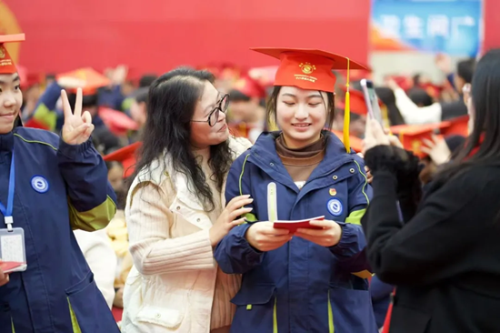 哀哀父母,生我劬勞;哀哀父母,生我勞瘁。父母和孩子互換書信環節,家長們將一封封滿載深情厚意的家書遞至孩子手中,這些家書不僅是家庭溫暖與親情的凝聚,更是長輩們殷殷囑托與深切期望的載體;孩子們的信中有對父母養育之恩的感激,有對未來的憧憬和向往,更有對生活的堅守和熱愛。一封家書,紙短情長,寫不盡拳拳之意;一句祝福,淚光盈盈,道不完眷眷親情……家長和孩子們熱情相擁,溫情和感人是現場的主旋律。家長代表動情寄語,獻上了對所有孩子的美好祝愿。他鼓勵學生們在未來的日子里,為推進中國式現代化添磚加瓦,貢獻出屬于自己的青春力量。
