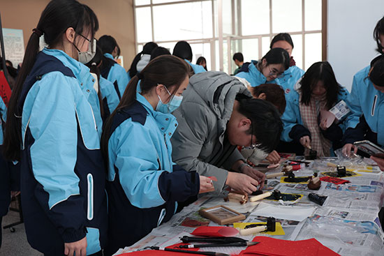 在現(xiàn)場工作人員的指導下,師生們還親身體驗了拓印技藝,感受非遺傳統(tǒng)文化的魅力。新年拓福,以拓為靈,大家選擇自己喜歡的模具,輕輕按壓,墨色緩緩滲透紙張,一筆一畫都承載著對未來的美好憧憬。