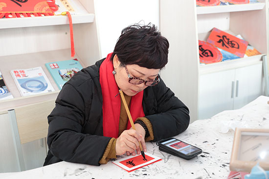 參與活動的師生們也躍躍欲試,參照字帖,手握毛筆,在紅紙上盡情揮毫。筆鋒游走,墨香四溢,一個個或青澀稚嫩、或圓潤可愛的“福”字躍然紙上,飽含著大家對新春的美好祈愿。