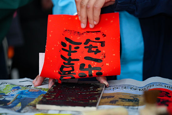 活動現(xiàn)場書香四溢,“年味”十足,一條條長隊有序排開。送“福”字的書法大家以及書法社團老師們以墨筆作媒,以墨字傳情,提筆凝神,在紅紙上揮斥方遒,筆走龍蛇,一橫一豎、一撇一捺,從傳統(tǒng)的楷書到飄逸的行書,一句句工整的妙聯(lián)、一個個飽含祝福的“福”字,不僅展現(xiàn)了書法藝術的魅力,更寄托著大家對新的一年幸福生活的殷切期盼。