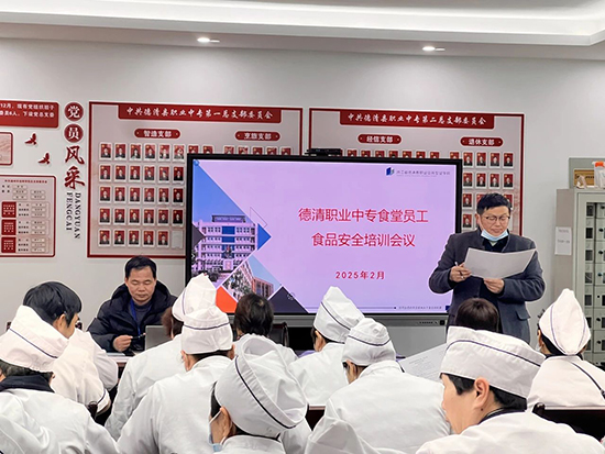 2月14日下午,德清職業中專保障處召開了食堂員工食品安全培訓會議,旨在進一步提升學校食堂的食品安全管理水平,確保廣大師生的飲食健康與安全。會議由學校保障處處長姚建強主持,食堂負責人及46名食堂工作人員參加培訓。