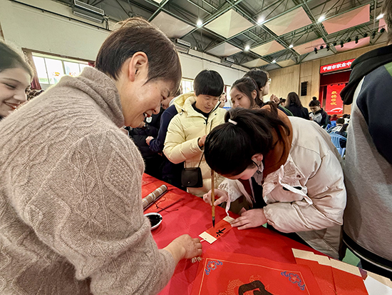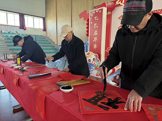 浙江老年開放大學(xué)平湖學(xué)院作為共建單位,助力活動(dòng)開展。書法創(chuàng)作班的老年學(xué)員們?cè)邶弴?guó)銘老師的帶領(lǐng)下,與新疆學(xué)子共同書寫新春祝福,傳遞代際溫情。