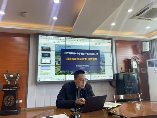施國扣對高職聯合體考試和市期末統測成績進行分析,在肯定教師工作及取得成績的基礎上,對新學期教學工作提出三點要求:一是做分析,找準突破點;二是明導向,錨定發力點;三是抓落實,聚焦關鍵點。
