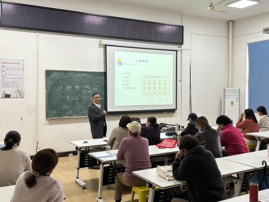 在開(kāi)班儀式上,安吉縣著名易經(jīng)專家厲和民老師登上講臺(tái),為學(xué)員們帶來(lái)了精彩的第一課。厲和民老師以其深厚的易經(jīng)功底和豐富的教學(xué)經(jīng)驗(yàn),在課堂上深入淺出地講解易經(jīng)的奧妙,贏得了學(xué)員們的陣陣掌聲和一致好評(píng)。