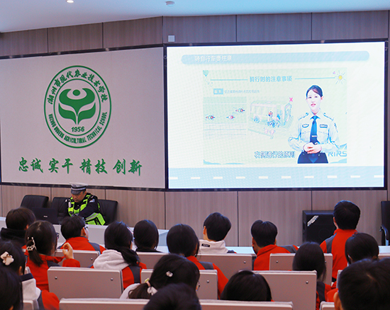 為增強(qiáng)學(xué)生的交通安全意識,提高自我保護(hù)能力,預(yù)防道路安全事故發(fā)生,3月3日,湖州市埭溪交警中隊(duì)的交警走進(jìn)湖州市現(xiàn)代農(nóng)業(yè)技術(shù)學(xué)校,為學(xué)生帶來一場別開生面的交通安全講座。