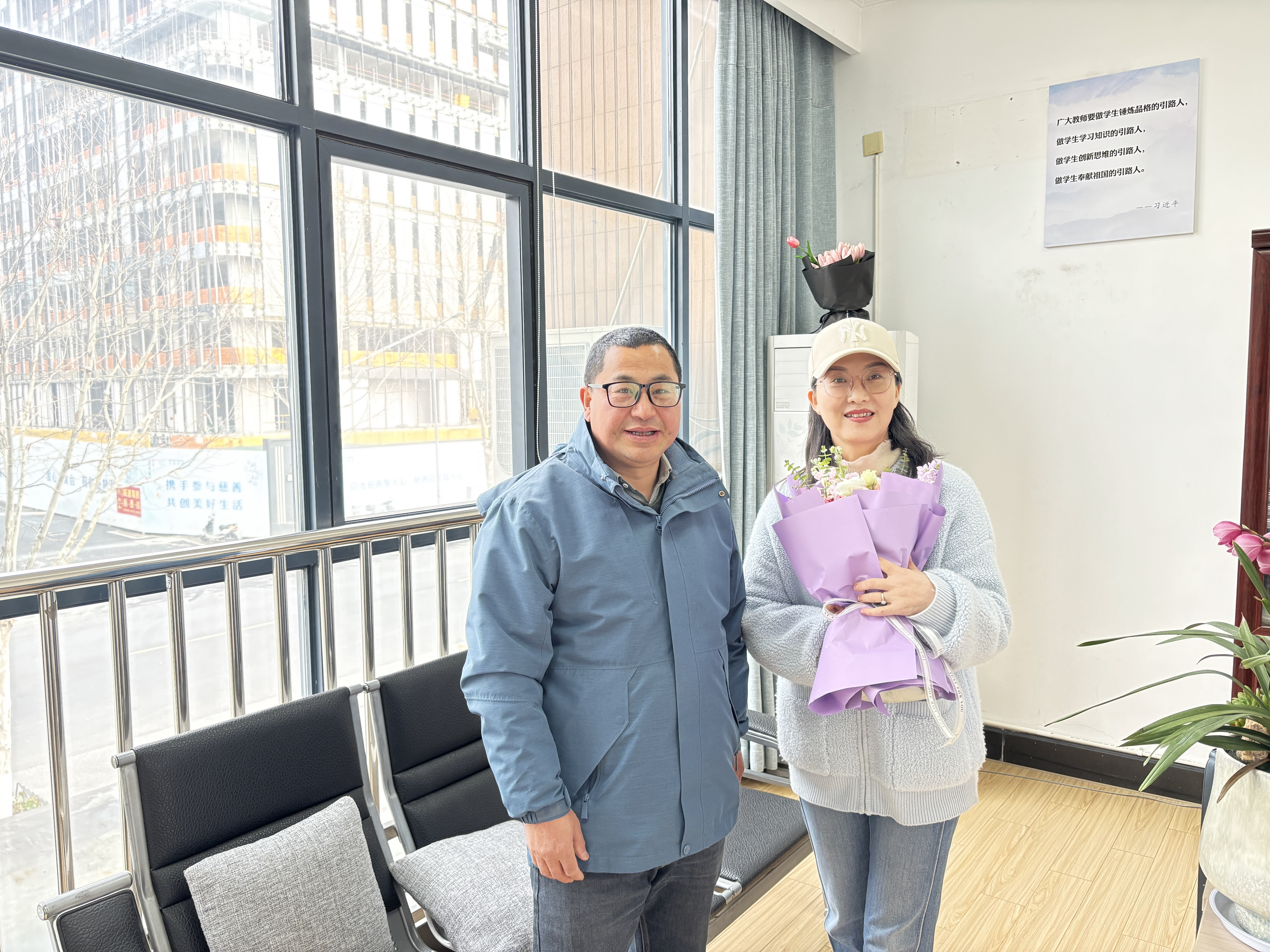 隨后,學校行政開展“實干爭先 鮮花送暖”慰問女教職工活動。副校長張虎代表全體男教師向女教師致以節日的祝福,感謝女教師長期以來為學校所做的貢獻,并送上鮮花和慰問品,鼓勵大家不負韶華、砥礪前行,繼續發揚巾幗不讓須眉的精神。