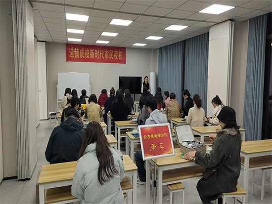 茶藝課堂則彌漫著悠悠茶香。樓惠蘭老師身著典雅的傳統服飾,舉手投足間盡顯優雅。她細致地演示著泡茶的每一道工序,從溫杯潔具到投茶注水,一招一式都韻味十足。學員們圍坐四周,屏氣斂息,沉浸在這古樸典雅的茶文化氛圍中,品味著茶香,感受著傳統文化的深厚底蘊。