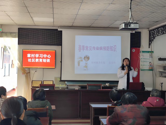 此次講座特別邀請了安吉縣章村衛生院的沈凌梅醫生擔任主講。沈醫生憑借豐富的專業知識和臨床經驗,深入淺出地講解了春季常見傳染病的種類、傳播途徑及預防方法,通過生動案例和直觀演示,讓大家深刻認識到疾病預防的重要性。