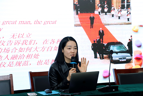 培訓活動邀請了柯橋區職業教育中心資深形象管理師蔣米娜前來授課,內容包括職業形象、禮儀規范、溝通技巧等。蔣老師以身示范,并逐個動作指導糾正,整個培訓過程生動有趣,學員參與度高,互動頻繁,氛圍熱烈。