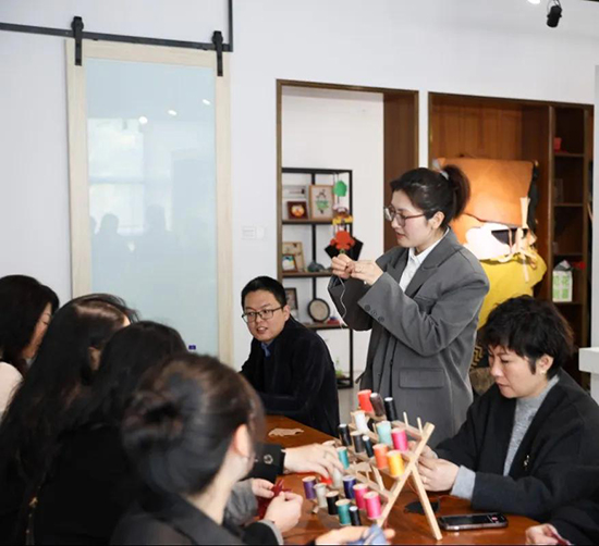 下午,參會代表在學校服裝專業部部長姚律的帶領下,實地參觀美育展廳、服裝實訓室,并體驗服飾品制作工藝。學校先進的實訓設備、師生創作的匠心作品以及“以美育人、以技促學”的辦學特色,獲得了一致肯定。