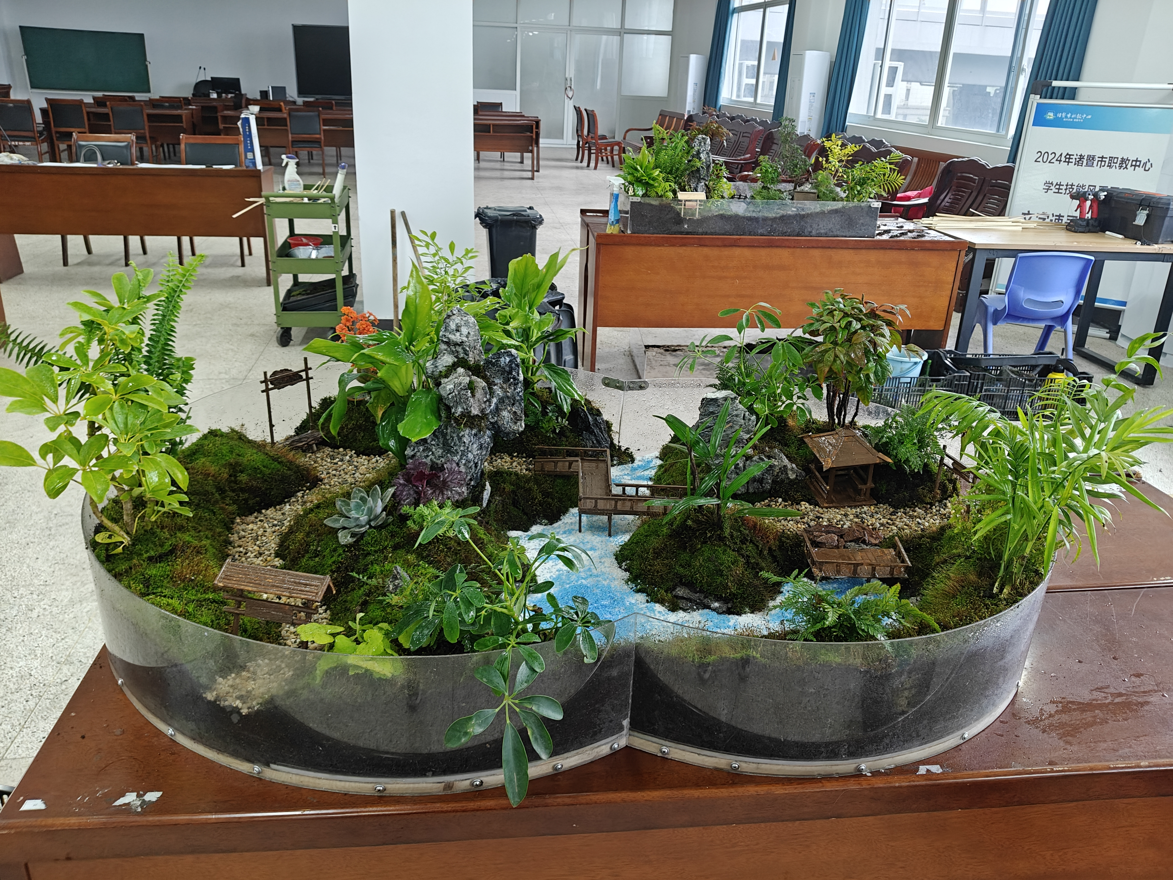 在微景觀設計與制作項目中,參賽團隊需要在規定的兩小時內,根據自定的主題和容器等器材,完成園林微景觀的設計與制作。選手們充分發揮創意,巧妙構思,將園林美學與實際操作技能相結合,呈現出一個個精美絕倫的微景觀作品。他們互相配合,合理安排工作流程,安全施工,最終成功協作完成了園林微景觀的制作。這一過程中,不僅展現了學生們的專業技能,更體現了他們團隊協作和解決問題的能力。(黃靈平)