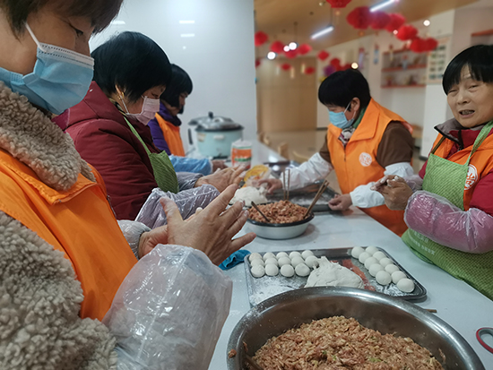 太極拳班吳曄虹在東湖社區(qū)居家養(yǎng)老活動中心參加制作元宵湯圓活動,兩人一組走訪慰問居家老年居民,送上社區(qū)的新年祝福。(浙江老年開放大學平湖學院)