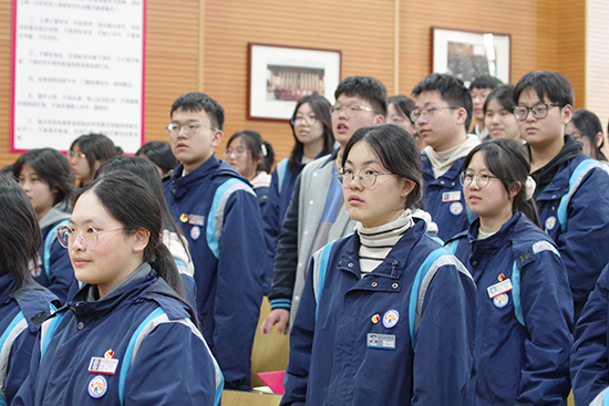 在2023級團(tuán)總支委員代表幼兒保育231晏欣同學(xué)的領(lǐng)誓下,全體團(tuán)員面向團(tuán)旗莊嚴(yán)宣誓,鏗鏘誓言回蕩大廳,既是對過往承諾的堅守,更是對未來擔(dān)當(dāng)?shù)男浴?/p>